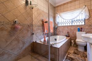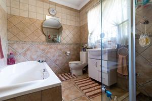 Then you will find 3 generously sized bedrooms with built in cupboards. The main bedroom is fitted with an aircon. The main en-suite bathroom is equipped with a bath and a shower. Second bathroom is also full.