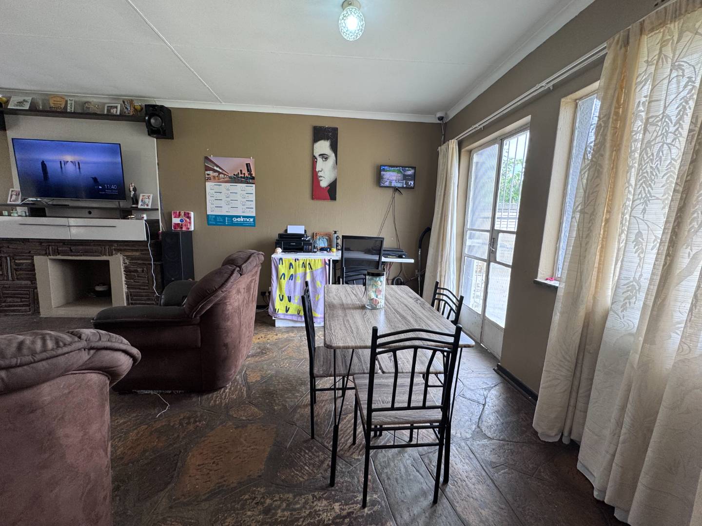 Inside, the home offers three bedrooms and two bathrooms, with one featuring a bath and the other a shower. The open-plan lounge and dining area create a welcoming living space with a fire place, flowing through to the kitchen and offering plenty of potential to redesign and make it your own.