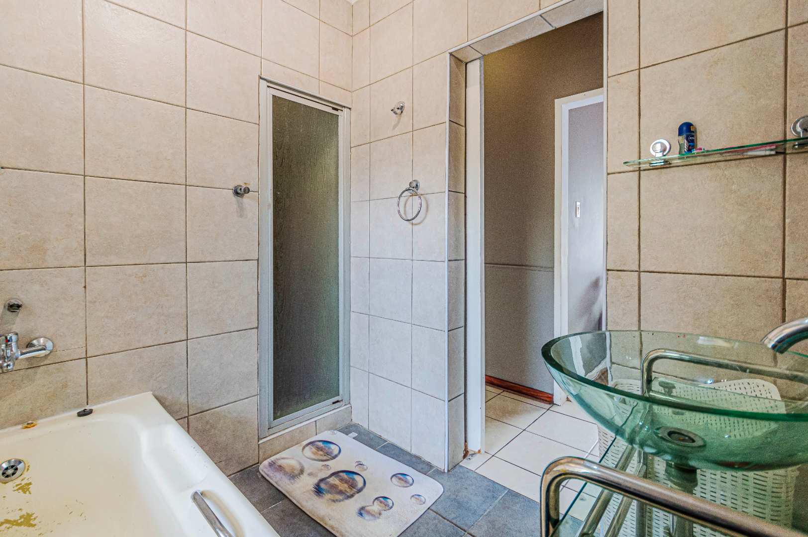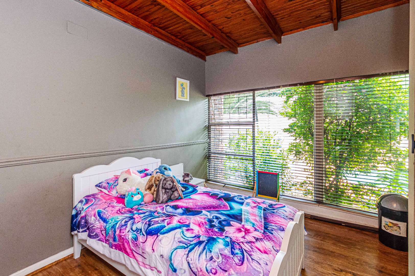 Fitted blinds, tiled and laminated flooring