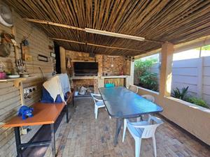 Outdoor living is a pleasure with the home's entertainment area, featuring a built-in braai perfect for weekend barbecues. Additional amenities include a spacious storeroom for all your storage needs and carports that can accommodate up to four vehicles. The beautifully manicured garden, sustained by a borehole, offers a tranquil escape from city life.