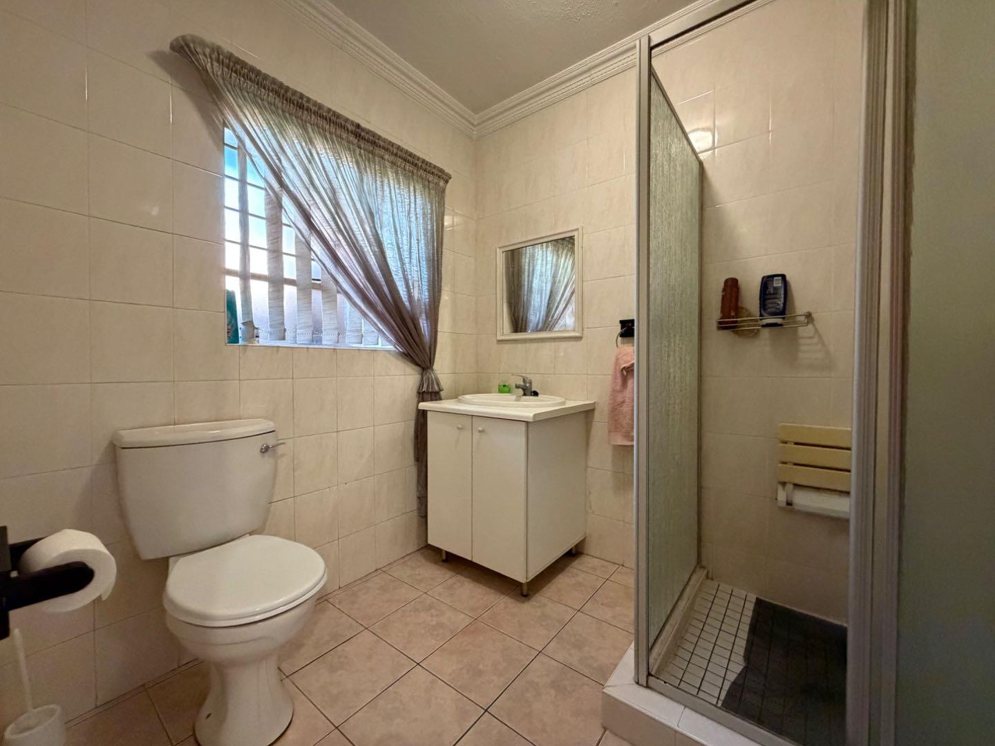 This home offers three well-sized bedrooms, all with built-in cupboards. Two of the bedrooms are north-facing, inviting in warm natural light throughout the day. The property includes two bathrooms—a main en-suite with a bath, and a second bathroom fitted with a shower.
