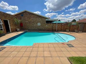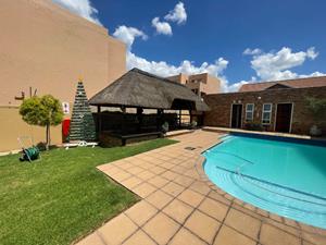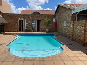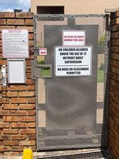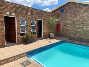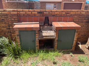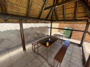 Enclosed pool area (very spacious) with Braai/Picnic facilities and toilet facilities too! Lapa with tables also! Grassed part.