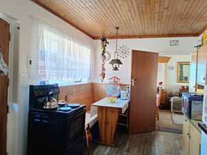 The carpeted living areas hide beautiful parquet flooring underneath, allowing for flexibility in your choice of flooring. The lounge features a lovely built-in shelf, adding a touch of elegance and practicality to the space. The kitchen, while spacious and traditional, boasts ample room for three appliances and includes a cozy breakfast nook – perfect for casual meals.