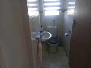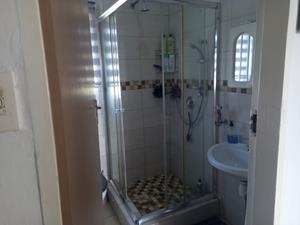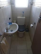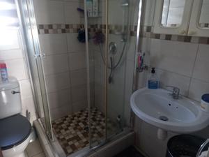 Neatly fitted bathroom with shower, basin, and toilet, plus a separate guest toilet
