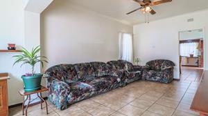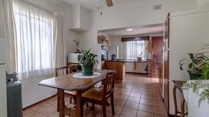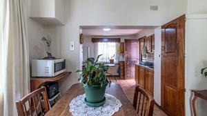 The main house features three spacious bedrooms, each fitted with carpets, offering a warm and cozy retreat. A full bathroom services the home, easily accessible from all bedrooms. The tiled lounge area leads into a bright sunroom, which adds to the relaxed living space and is perfect for enjoying a cup of coffee or reading in the morning light. Adjacent to the lounge is a tiled dining area that comfortably accommodates family meals and entertaining.