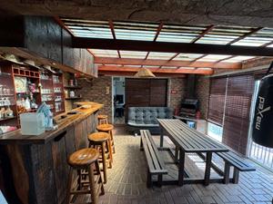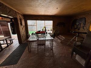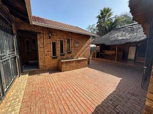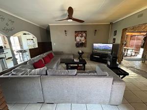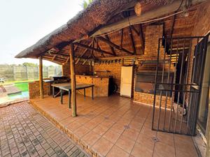 Indoor entertainment area with a jacuzzi and a bar and a fireplace/braai leading to a well-sized pool & tiled Lapa with a built-in braai, leading into a