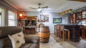 Dedicated Indoor Entertainment area with a wood-burning Fireplace and optional sleeper wood bar. Plus a Movie/TV Lounge and Guest Bathroom