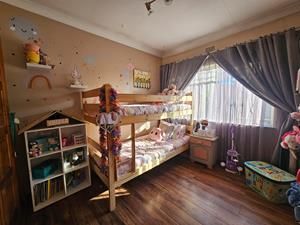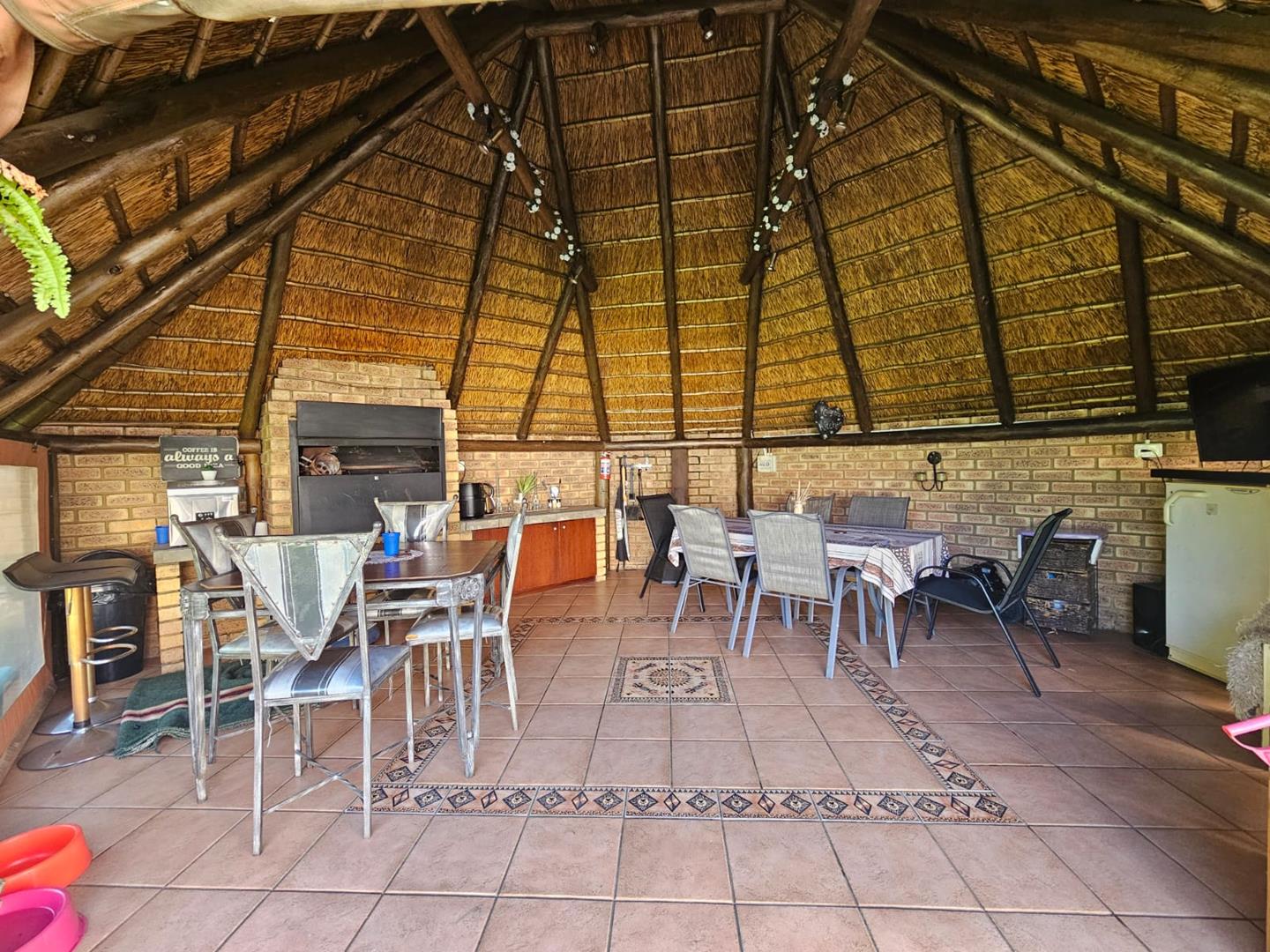 Additional features include a large shed for storage, a JoJo tank for water conservation, as well as a borehole. There is an outdoor study with a toilet, which can also be converted into staff accommodation if needed. The property is equipped with an isolator for the geyser and durable chromo deck gutters and fascias.