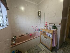 The home features three neat bedrooms, each adorned with laminate flooring and built-in cupboards. The main bedroom offers an added touch of luxury with an en-suite bathroom equipped with a spa bath and a fan to manage steam, along with a walk-in closet for ample storage.