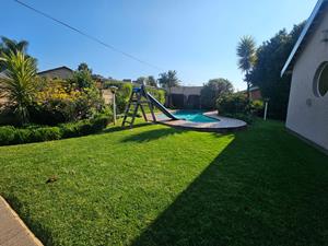 Step outside from the living areas into a lush garden complete with an entertainment lapa featuring a built-in braai, fireplace and canvas awnings to provide shelter during colder months. The well-maintained swimming pool adds a touch of luxury to this outdoor haven.