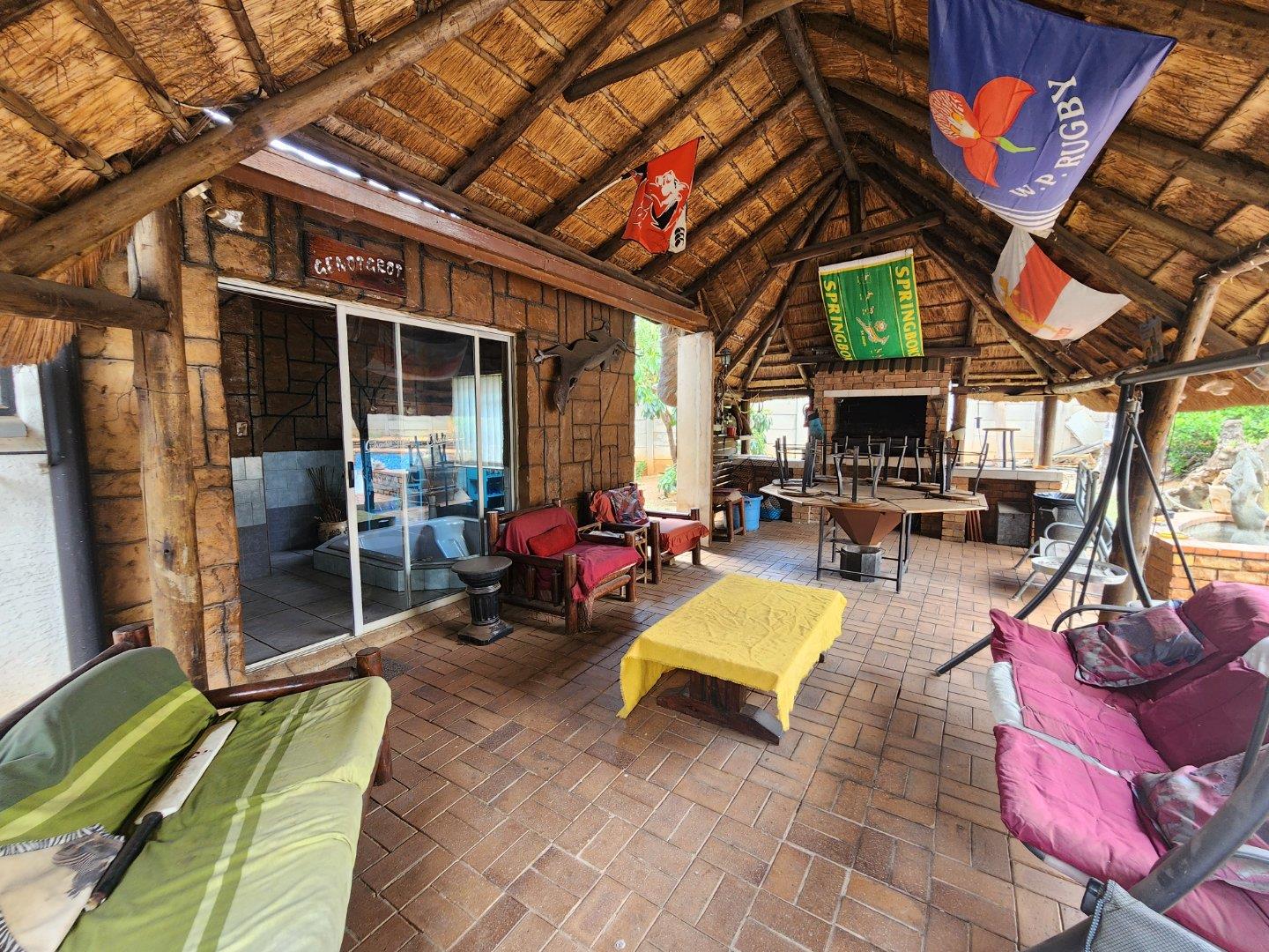 Outside, the home continues to impress. A dedicated entertainment lapa with a built-in braai creates the perfect backdrop for hosting friends and family, while additional features like a laundry room, staff quarters, and a double garage add everyday practicality.