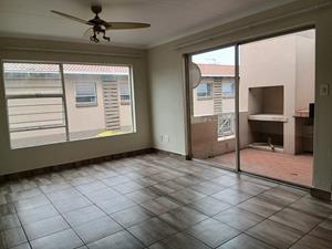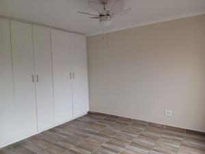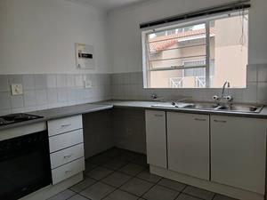 Open-plan kitchen with lots of cupboard space, tiled floor, washing and tumble dry connection, electric stove and oven.