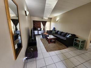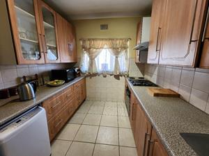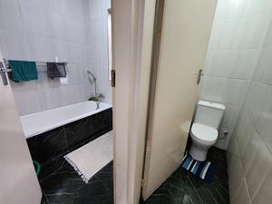 The separate, fully fitted kitchen offers modern built-in cupboards, an under-counter oven, hob, cooker hood, and ample space for your essential appliances. Both bedrooms are generously sized, with the main bedroom larger than average and fitted with built-in cupboards. The entire apartment is fully tiled, ensuring low-maintenance living.